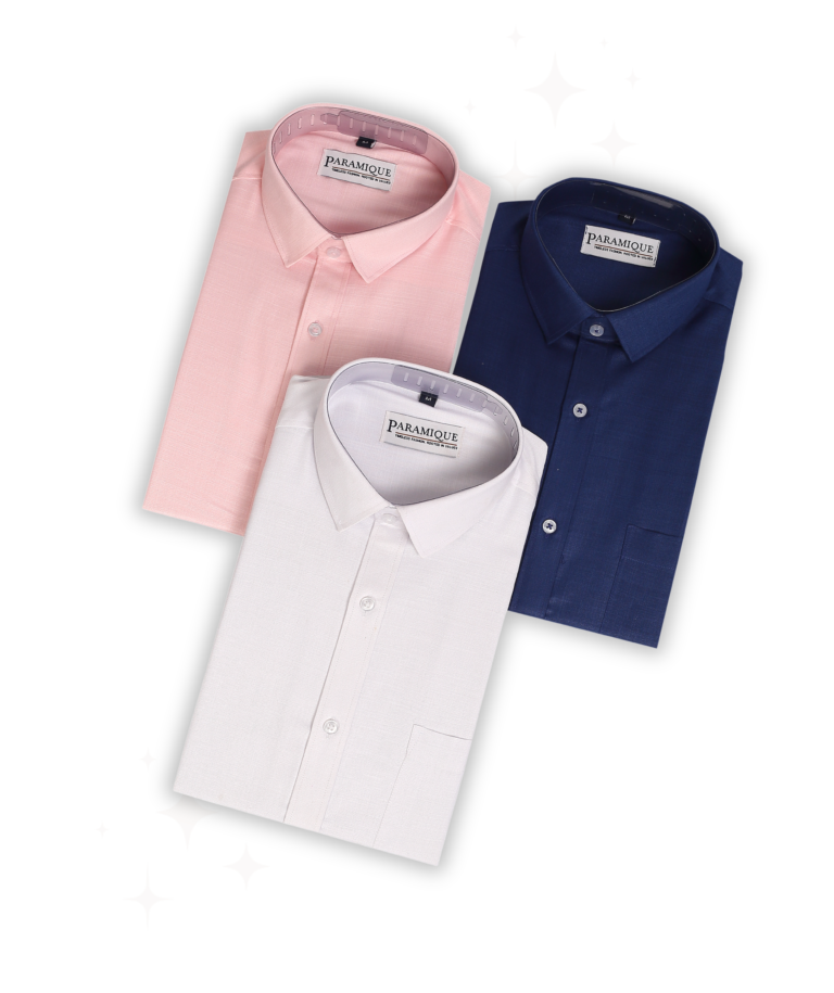 3 Shirt Set – White, Navy Blue, Light Pink | Premium Cotton Blend Collection