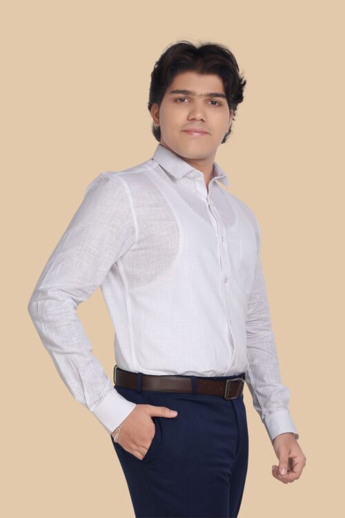 Textured White Formal Shirt – Soft Weave Elegance | Premium Office Essential (F005WH)