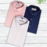 Upgrade your formal wardrobe with this versatile 3 Shirt Set featuring Classic White, Navy Blue, and Light Pink shirts – all crafted from a premium cotton-blend fabric that ensures all-day comfort and style. Each shirt offers a tailored fit with a smooth texture and refined finish, making this set ideal for every modern professional.
