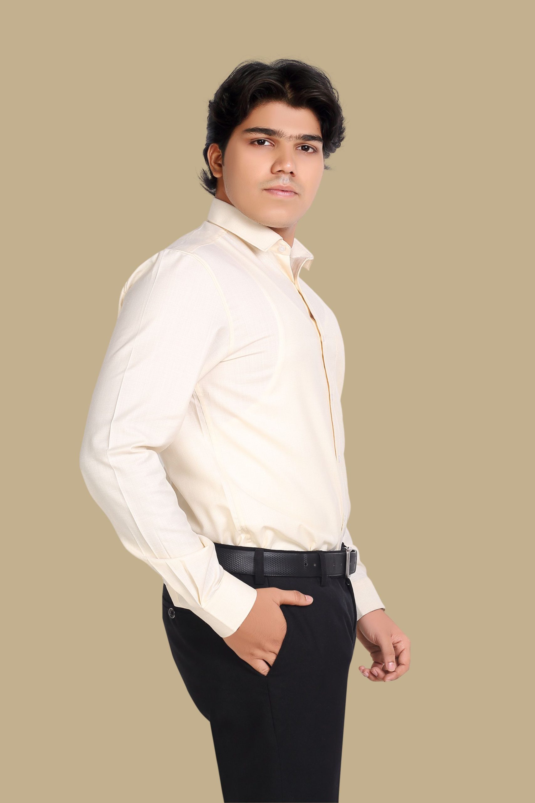 Add a fresh touch to your wardrobe with this Elegant Light Yellow Formal Shirt. Made from a soft, breathable cotton-blend fabric, it offers a clean silhouette and effortless comfort throughout the day. The subtle yellow tone provides a gentle contrast, perfect for both work and social occasions.