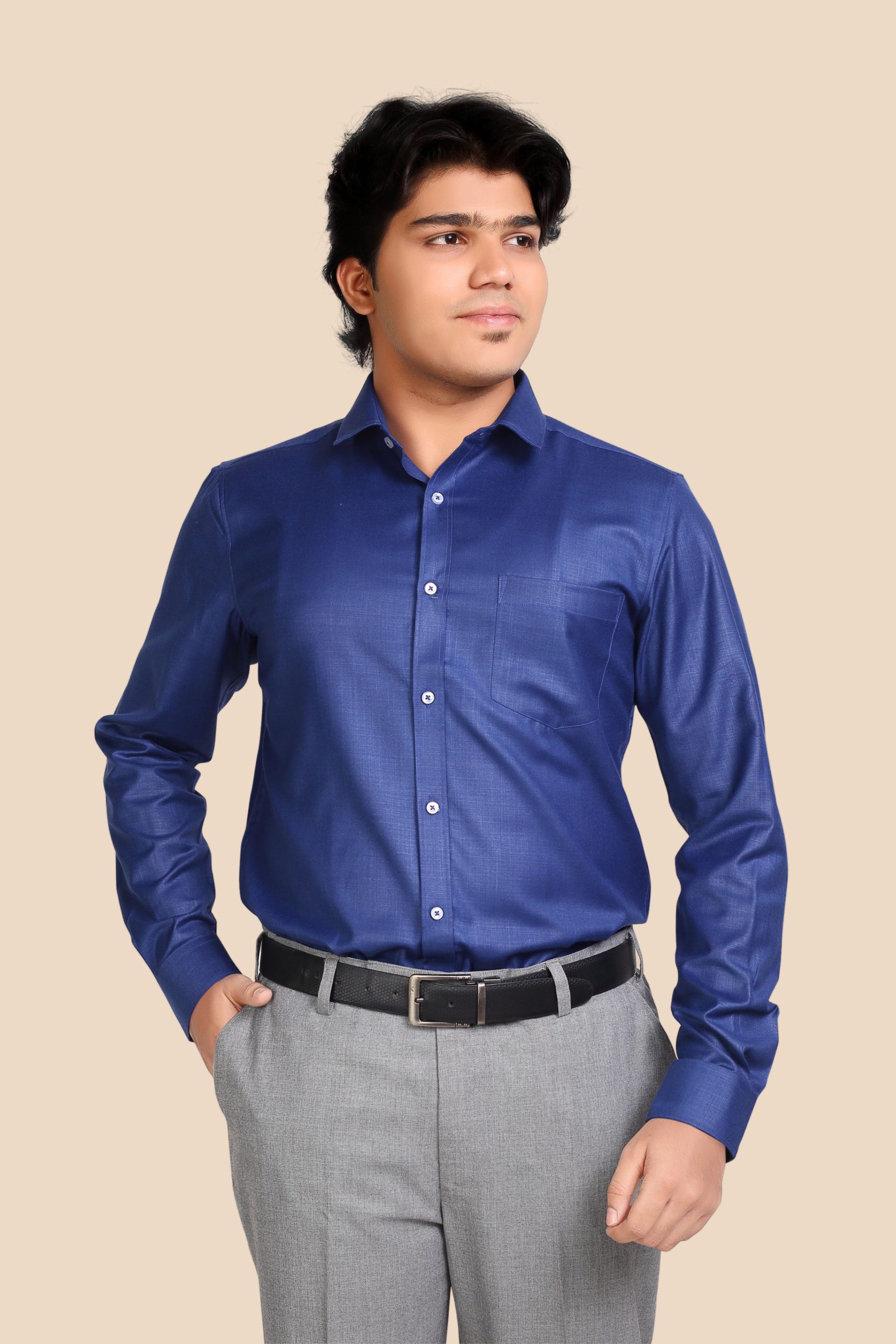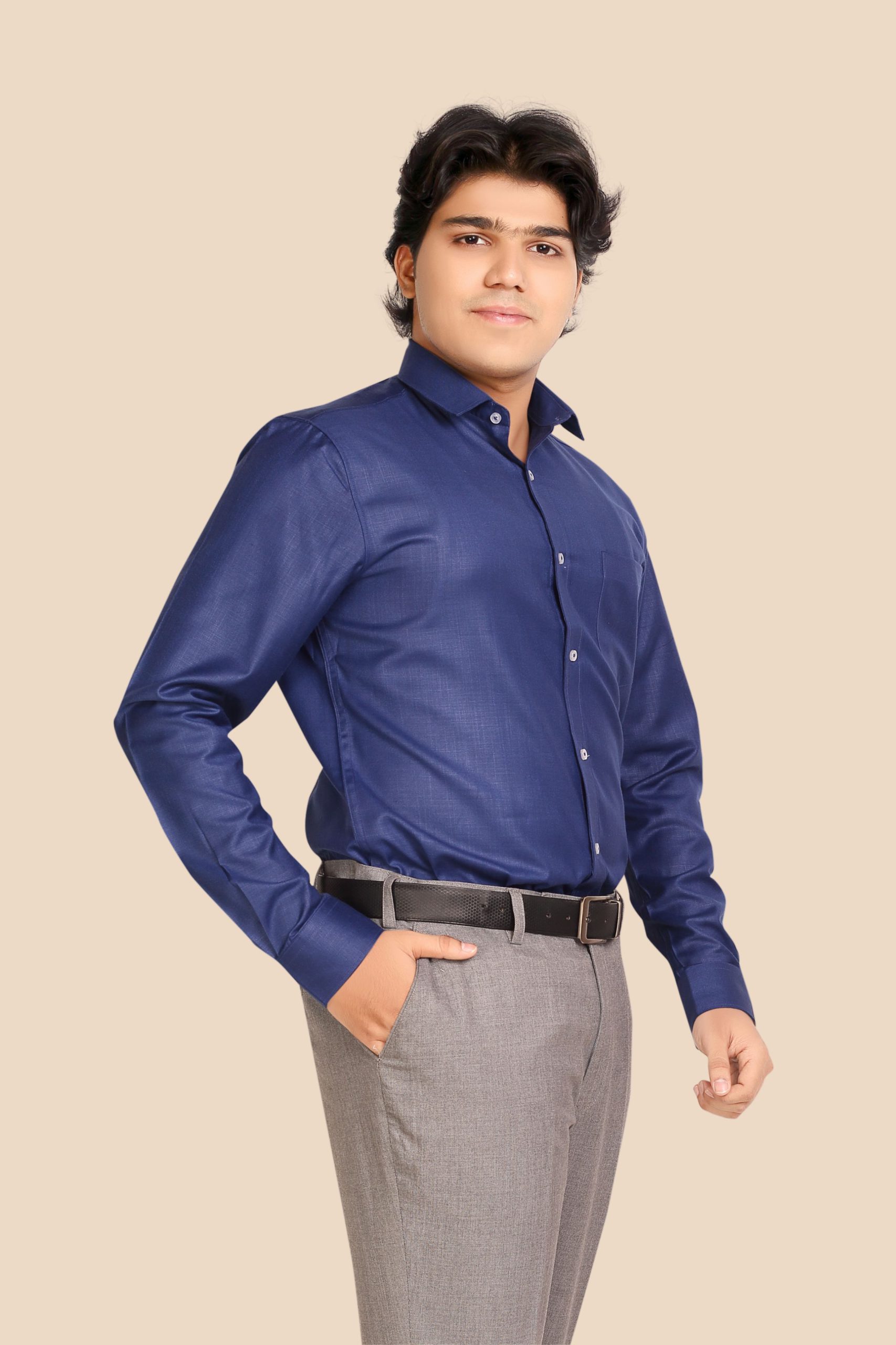 Exude confidence in this deep Navy Blue Formal Shirt – a power color for today’s professional. The soft cotton-blend fabric, subtle sheen, and bold tone make it ideal for boardrooms, business dinners, and evening events.